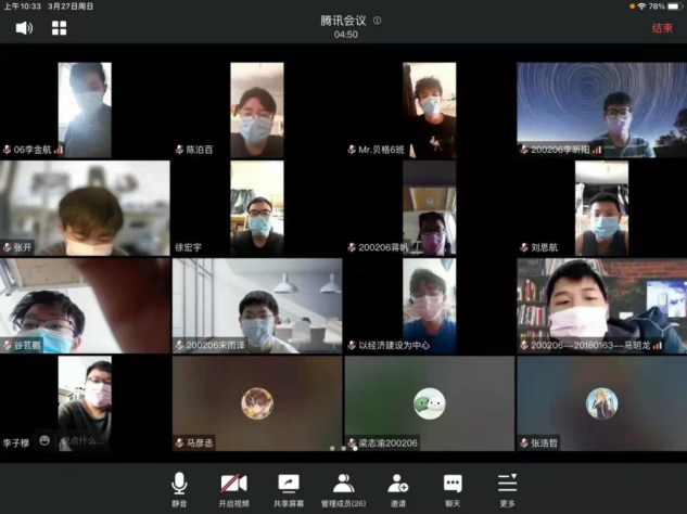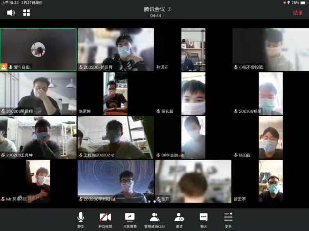 2022年3月27日.210205团支部全体成员通过腾讯会议,在线上共同观看并学习了习总书记关于疫情防控的讲话和相关视频,通过此次学习,一致认为习总书记的重要讲话和一系列重要指示深刻阐述了疫情防控的重大意义、基本策略和重点举措,作为践行“两个维护”的第一方阵,中央和国家机关青年在疫情防控战役中肩负着特殊重要职责,要进一步增强“四个意识”、坚定“四个自信”、做到“两个维护”,带头坚决贯彻落实习总书记重要讲话和一系列重要指示精神,牢记人民利益高于一切,紧密结合岗位职责,科学研判疫情形势,准确把握疫情变化,不断完善防治举措,坚持以科学的方法切实提高疫情防控的针对性和有效性,从自身做起,以实际行动践行听党话。