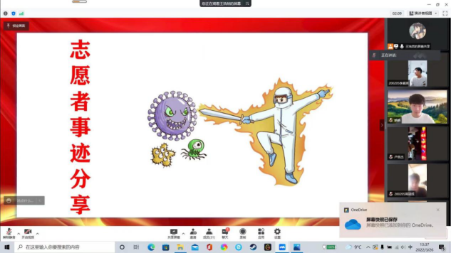 2022年3月26日中午12点30分,研190204团支部通过腾讯会议的方式开展了“同心抗疫,感恩有你”主题团日活动,在疫情时期,团支书江帅呼吁大家,全面增强防范意识,科学自我防护,切实提高政治站位,强化责任担当,认真对待线上学习,按时完成学习任务,众志成城,共克时艰。