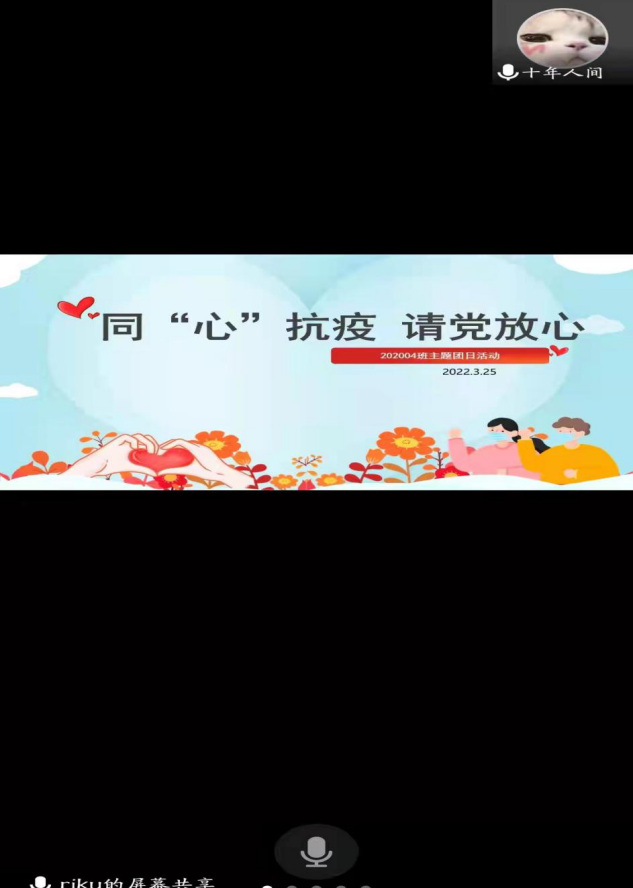 2022年3月26日,200205班在线上开展了“同心抗疫,请党放心”主题团课。会议第一项:奏唱共青团团歌;会议第二项:由主持人王浩然为大家介绍了近期长春市疫情局势的严峻,并且讲述了我们在宿舍里要如何最好防护,例如尽量减少出寝室的次数,出门戴好口罩和落实一天三消毒三通风;会议第三项:请志愿者邵傲博为大家介绍一直以来志愿者的工作和老师们的工作。同学们深刻的意识到我们的安全来之不易,是靠老师们和同学们的辛勤付出维持的。会议最后主持人王浩然总结到:我们要团结一致对抗病毒,对志愿者和老师们怀有感恩之心,珍惜在校时间,加强计划打造健康和高效学习生活。