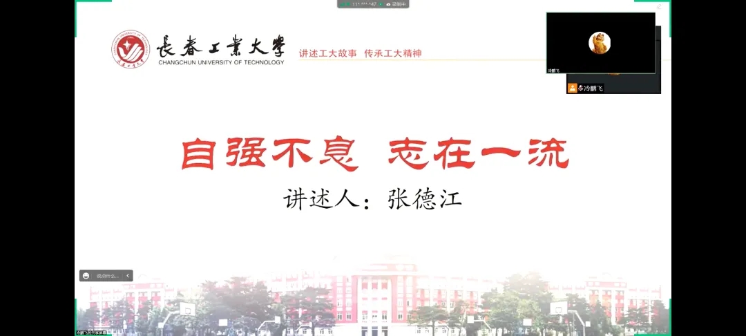 校长张德江讲述的《自强不息 志在一流》分别从党建思想政治工作,教育教学评估工作,申报博士点,学生赛事等各方面讲述了工大师生自强不息,争创一流的精神。