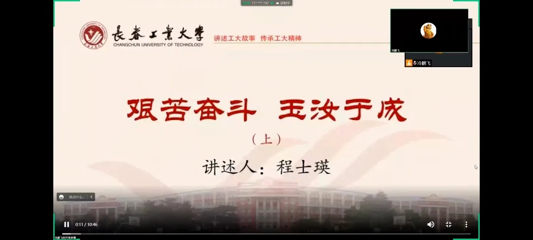 原吉林工学院院长程士瑛讲述的《艰苦奋斗、玉汝于成》分两个阶段内容,第一个阶段,1952年到1958年学校建校初期的艰苦创业,严格认真。第二个阶段,1978年到1992年服从需要,恢复学院,筚路蓝缕,艰难创业,一心一意,为吉林省经济建设服务。