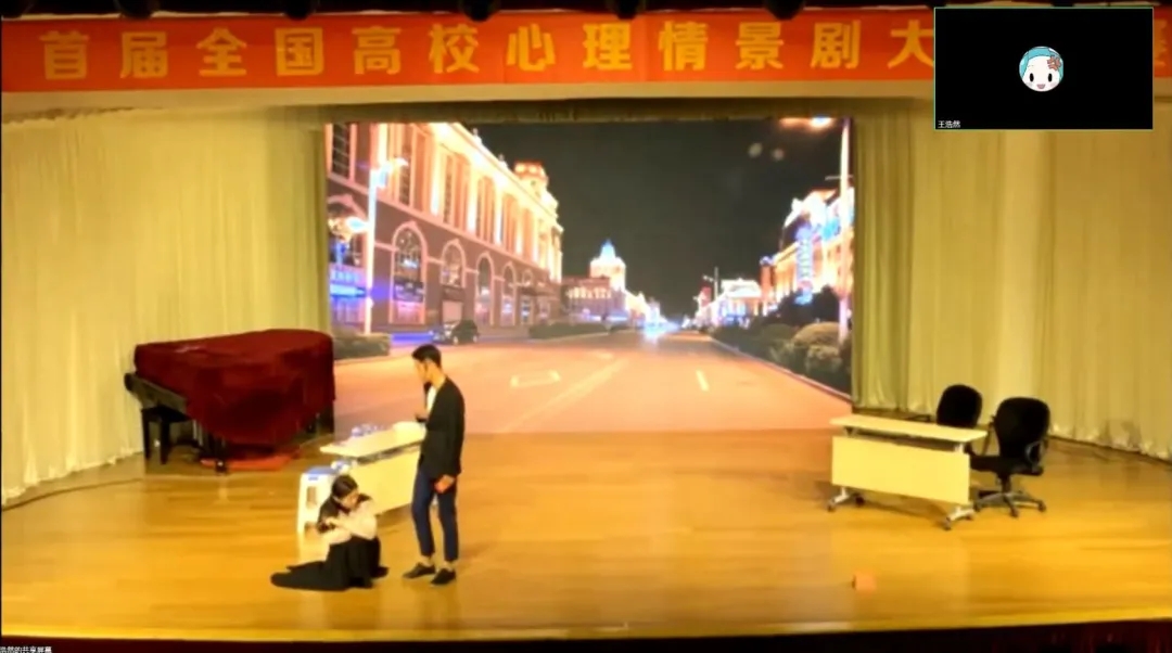 17级学长演的心理剧视频。带班学生王磊对今天的会议做出总结,并希望大家注重心理健康问题。