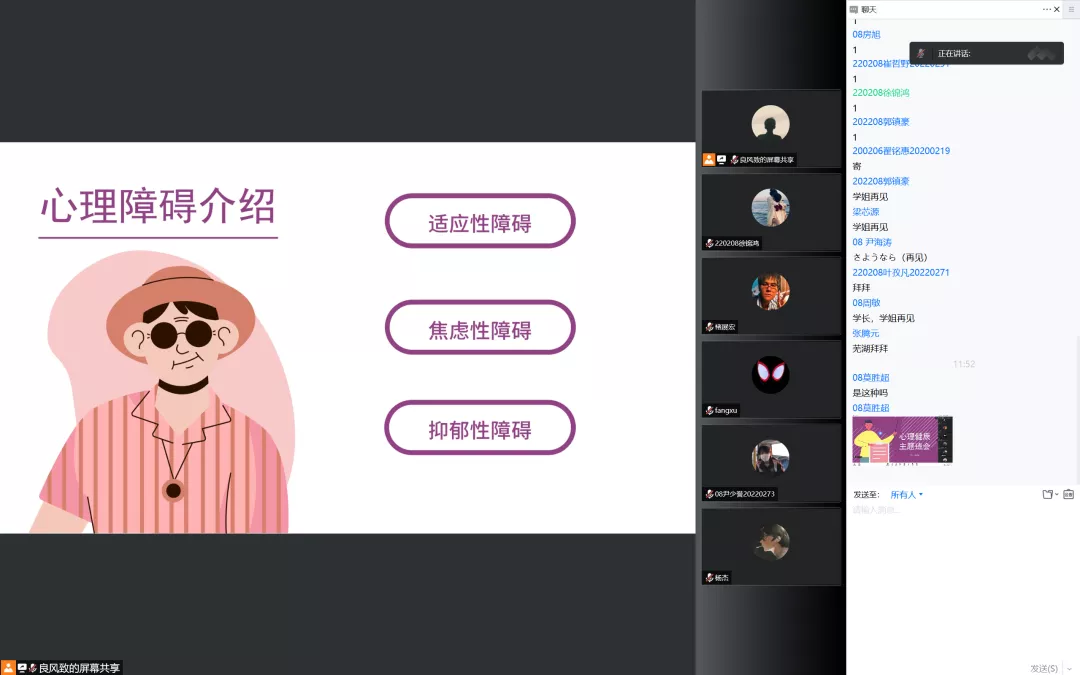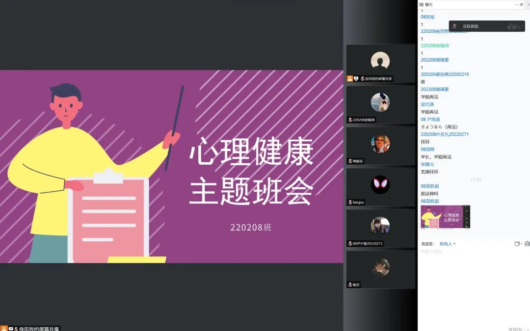 2022级各班开展线上心理健康主题班会,此次班会由各班带班学长主持,全体2022级学生参加此次活动。