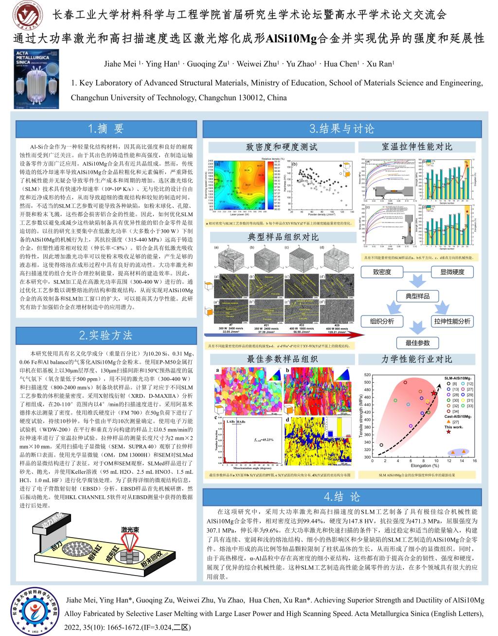 通过大功率激光和高扫描速度选区激光熔化成形AlSi10Mg合金并实现优异的强度和延展性-porn91 首届研究生学术论坛暨高水平学术论文交流会