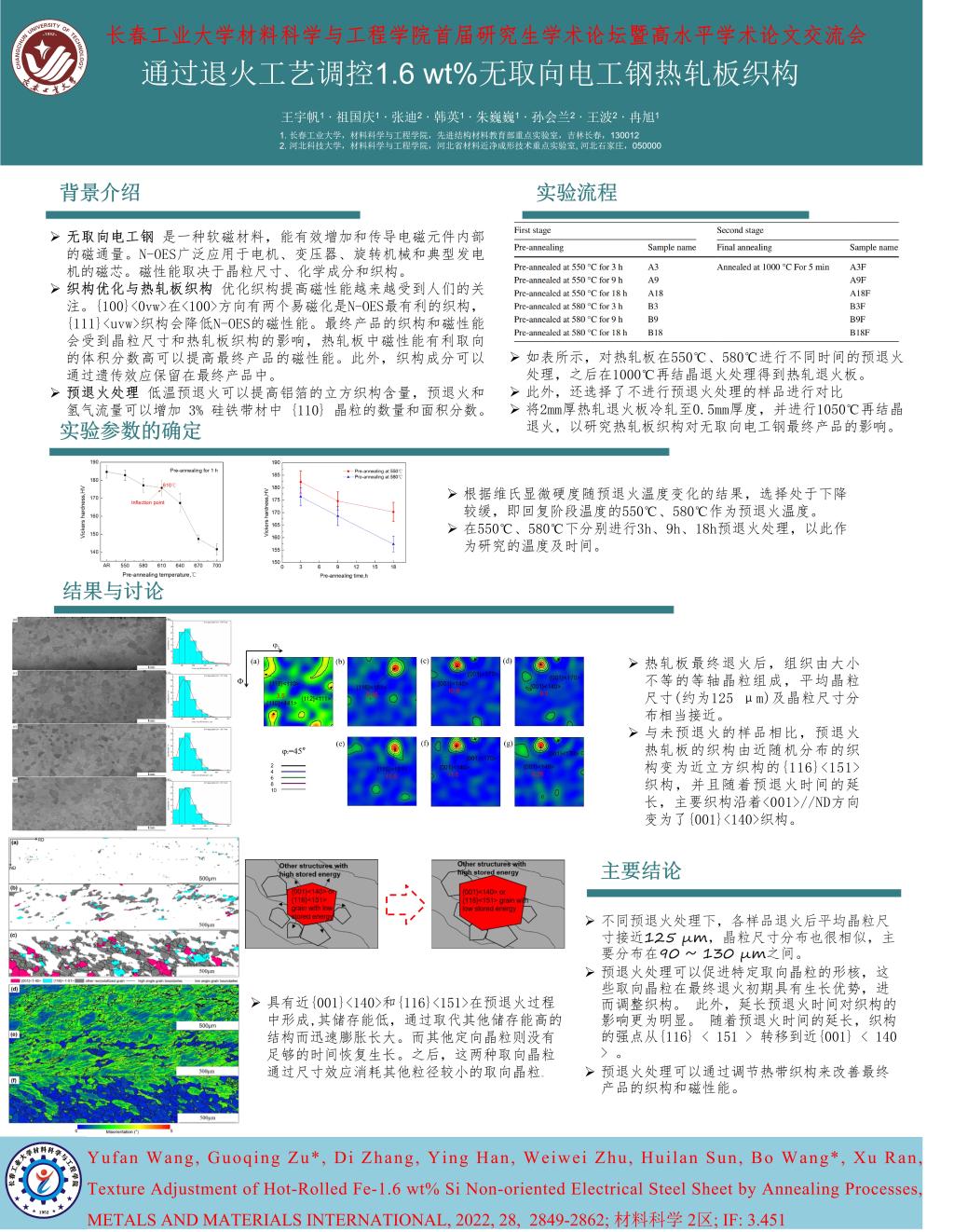 通过退火工艺调控1.6 wt%无取向电工钢热轧板织构-porn91 首届研究生学术论坛暨高水平学术论文交流会