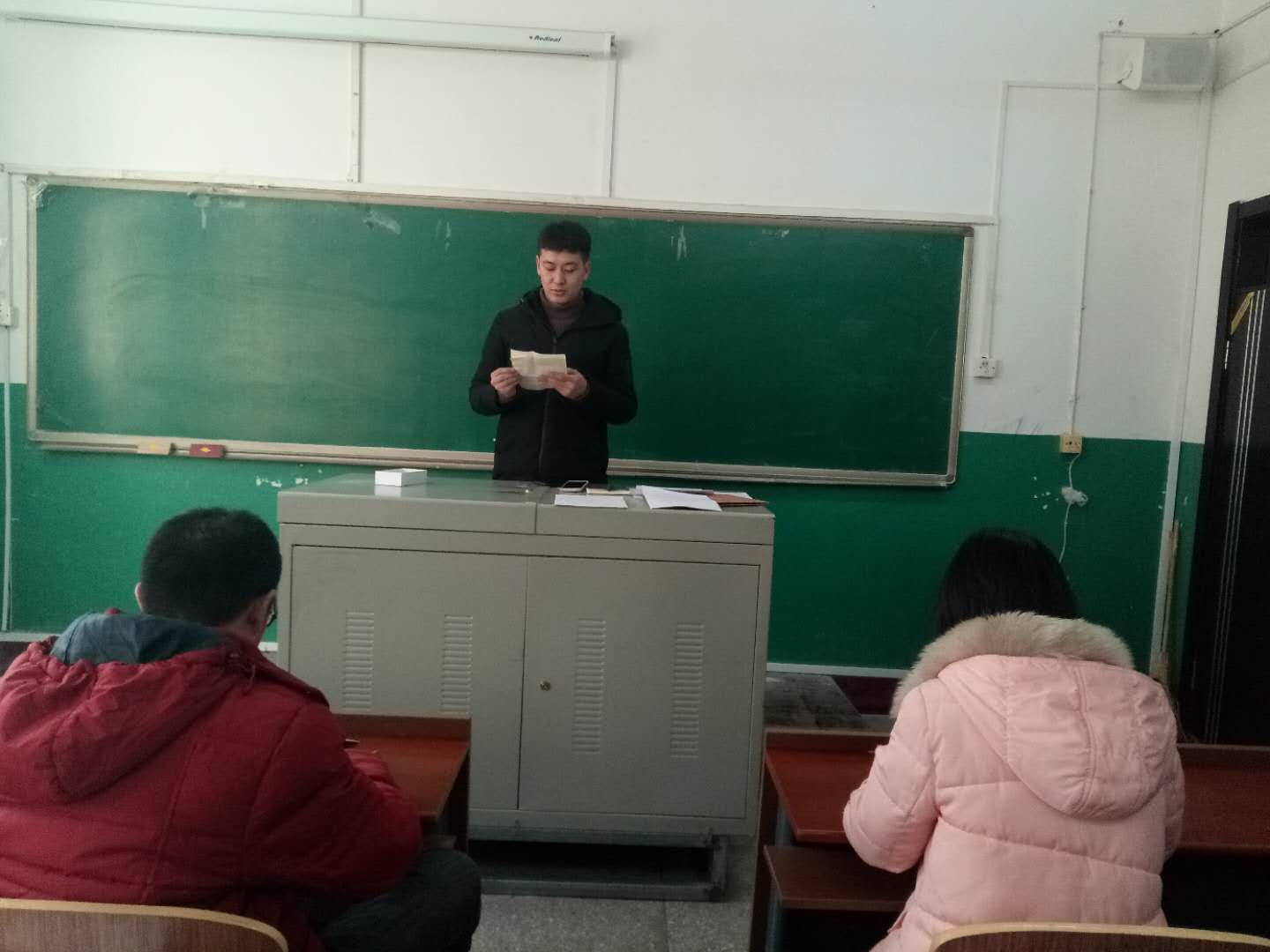 研究生党支部于2018年12月12日在材料楼202举行关于魏军虎、张莹、张上达3名同志的预备党员接收大会。研究生党支部书记渠源多主持此次会议。