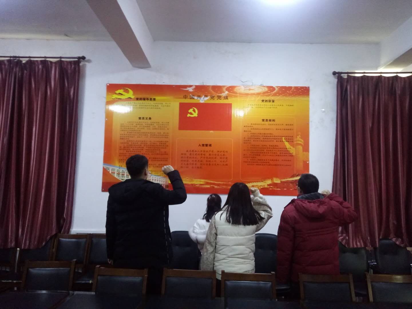 研究生党支部书记渠源多带领三位同志进行入党宣誓
