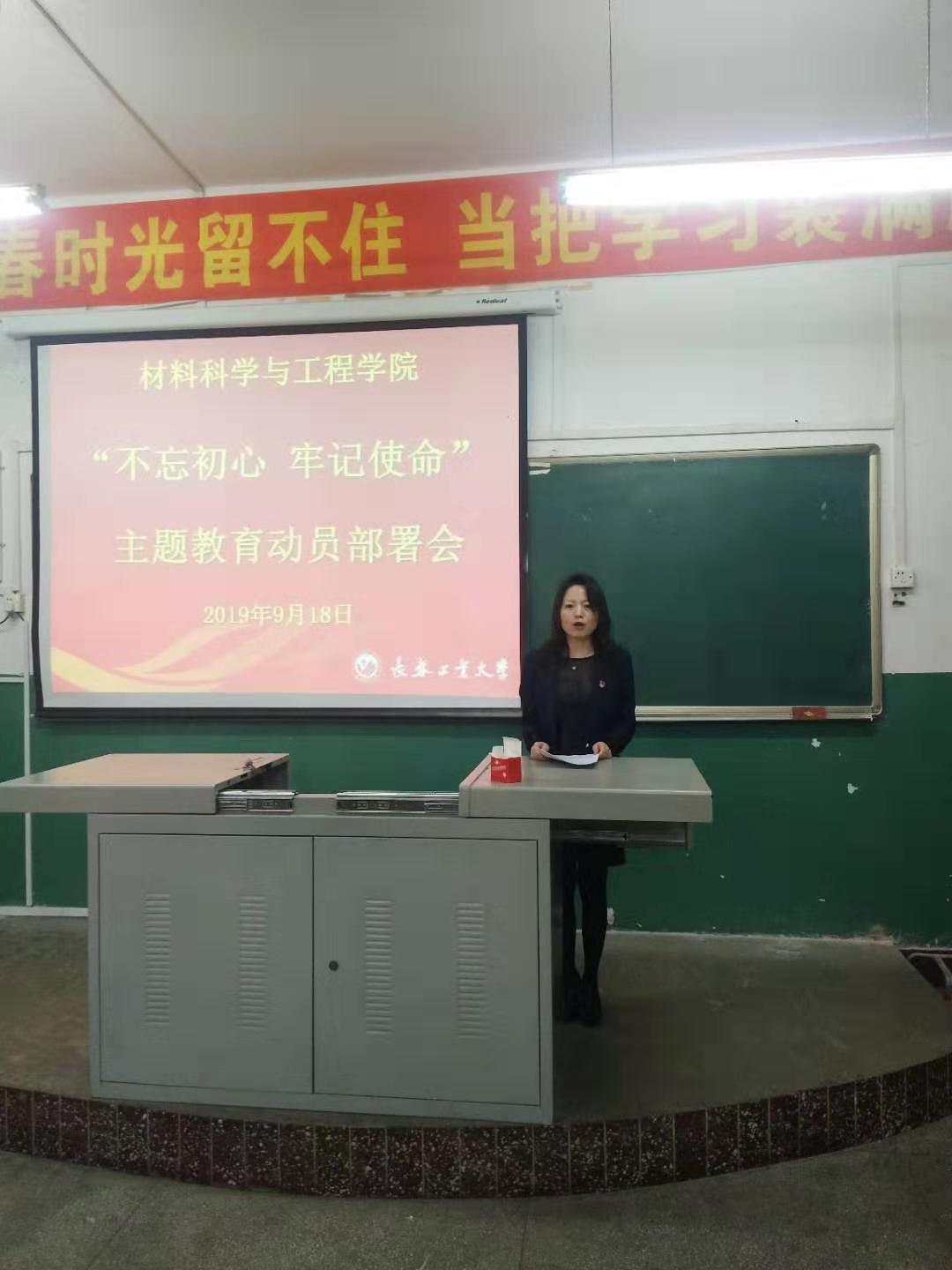学校主题教育第一工作指导组成员代表第一工作指导组做了重要发言。她指出,学院必须按照学校党委的要求开展好本次主题教育活动,要准确把握目标任务,全面落实各项制度要求,切实把主题教育抓实抓好。她强调,学院要突出理论武装,着力在深化学习教育上下功夫,坚持原原本本学,坚持全面系统学、深入思考学、联系实际学,坚持创新载体学,健全完善学习制度,科学制定学习内容,活化学习形式,把学习的劲头保持下来、质量提高上来、成效体现出来。