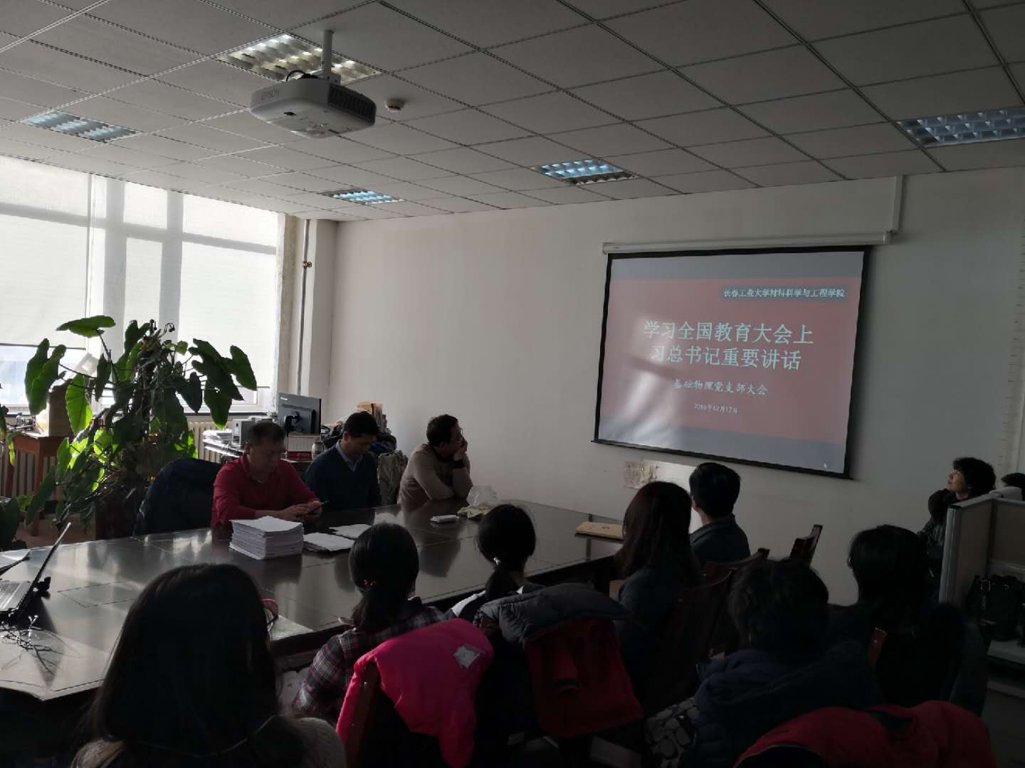 材院网讯(通讯员邹绍言)我院于2018年12月12日召开了全院教职工参加的教育思想大学习、大讨论活动,并且印发了习近平总书记在全国教育大会上的讲话、教育部长陈宝生在新时代全国高等学校本科教育工作会议上的讲话、“新时代高教40条”供教职工学习讨论使用,按照学院党委要求,各党支部结合自身情况分别召开了本支部的学习会。