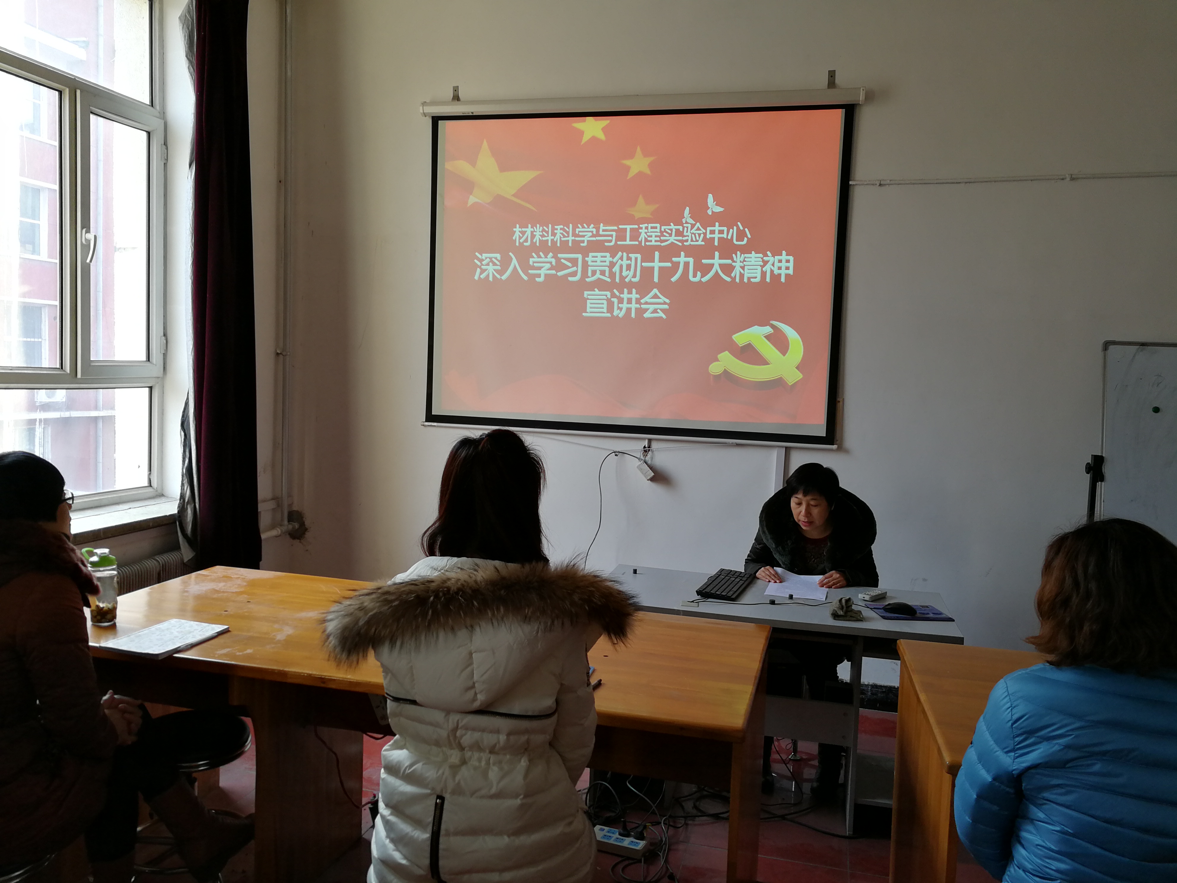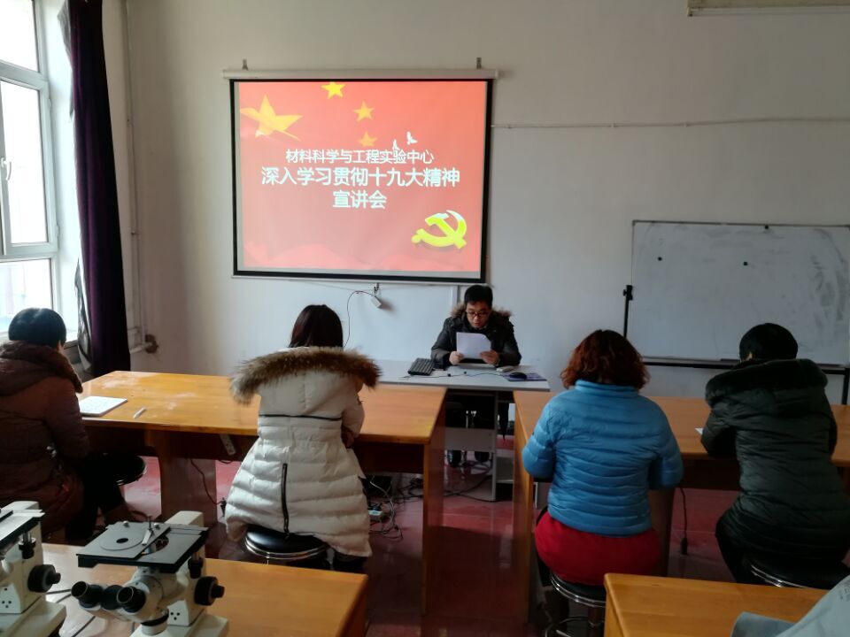 通过以上活动,进一步加强了教师对党的十九大精神的理解,营造出学习贯彻党的十九大精神的浓厚氛围。随着活动的深入进行,材料科学与实验中心全体教师将继续紧跟党的步伐,立足岗位,不忘初心,牢记使命,以习近平新时代中国特色社会主义思想为指导,为学校发展做出更大贡献。