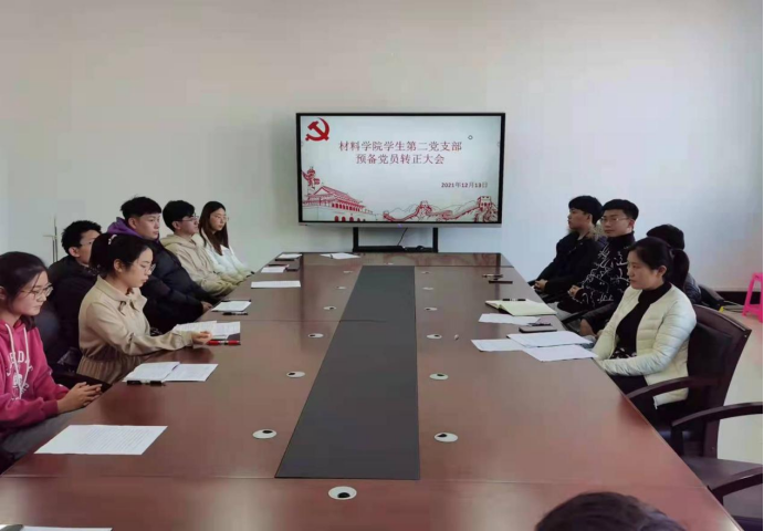 学生第二党支部于材料楼425会议室召开转正大会。本次大会由党支部书记张晓君主持,对王鑫等7名同志是否能如期转正进行讨论和表决。