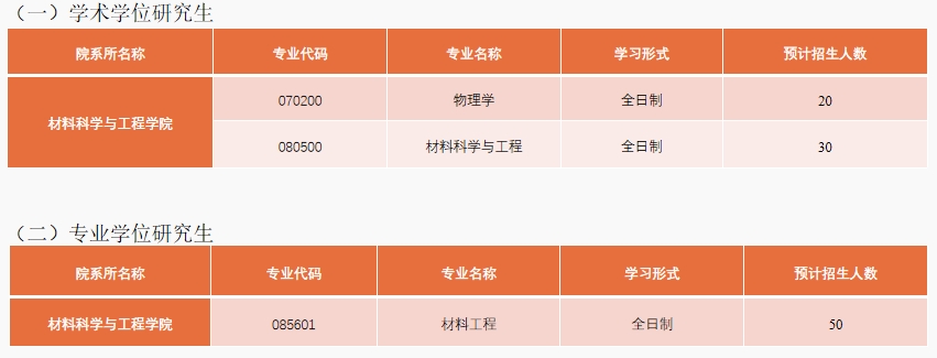 学术型工学硕士点:材料科学与工程、交通运载材料工程