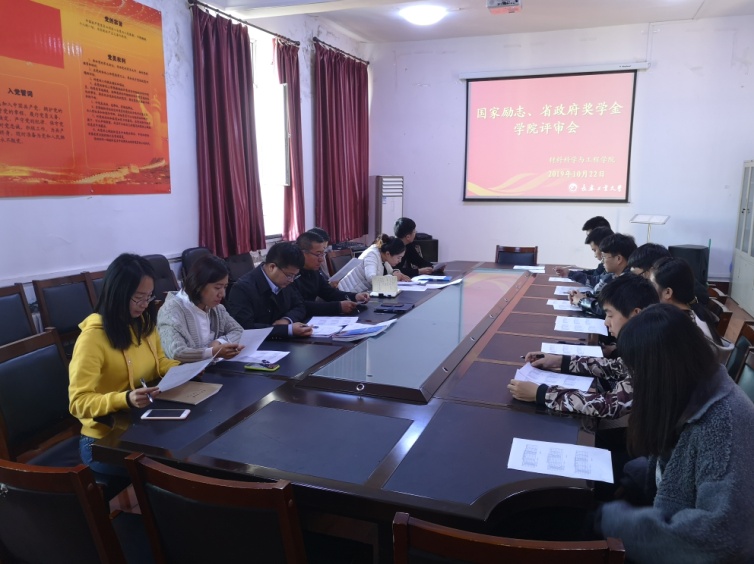 五楼会议室对16、17、18级学生进行国家励志奖学金和省政府奖学金的评选,本次评定工作会议由2017级辅导员张晓君主持。
