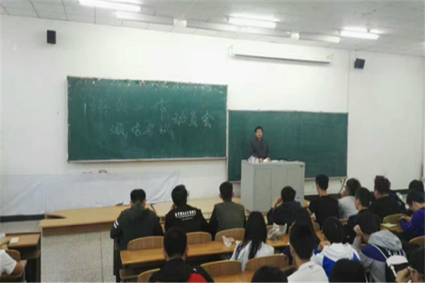 在北湖校区西阶101教室召开征兵工作暨诚信考试动员大会。学生党支部书记万杨、辅导员助理顾海亮老师及2016级全体同学参加了会议。