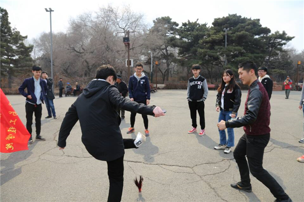 中午12点30分参加活动成员准时到达图书馆门口集合,并分为蓝队和红队两组。此次活动采取两种形式,分别以协作为基础的几人几足的比赛和以配合为主的团体踢毽比赛。在祭奠先烈的同时,提升团体合作意识。