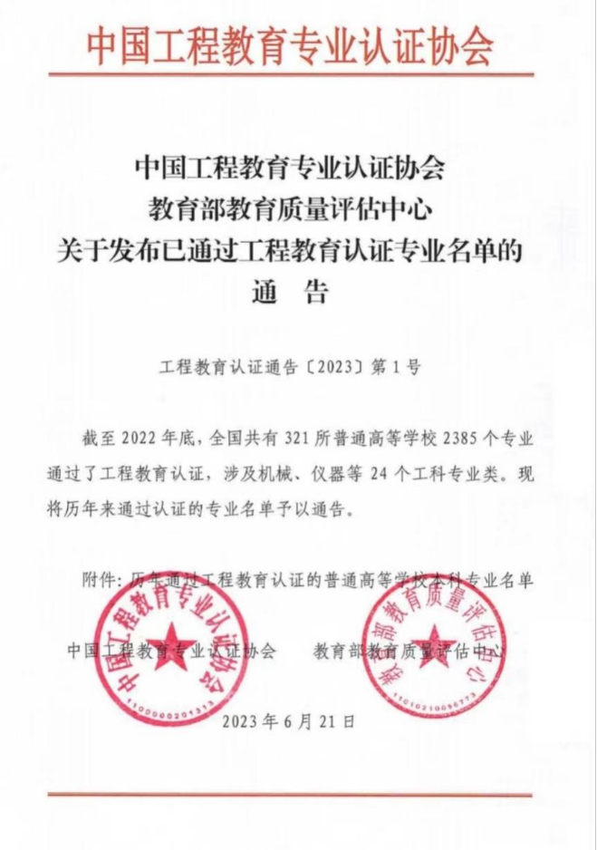 材院网讯(通讯员 宋颖)近日,中国工程教育专业认证协会、教育部高等教育教学评估中心发布了《关于发布已通过工程教育认证专业名单的通告》(工程教育认证〔2023〕第1号)。porn91