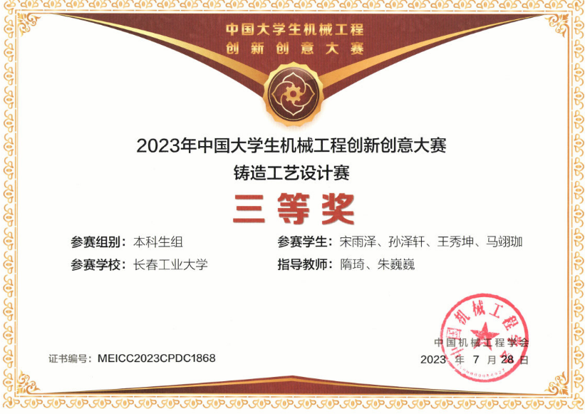首次参加中国大学生机械工程创新创意大赛-铸造工艺设计赛并获奖
